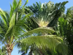Whitest white sand, clear sparkling water, spacious green lawns with large shade trees, tropical flowers, a wide half-mile boardwalk, and a huge park full of tropical plants.