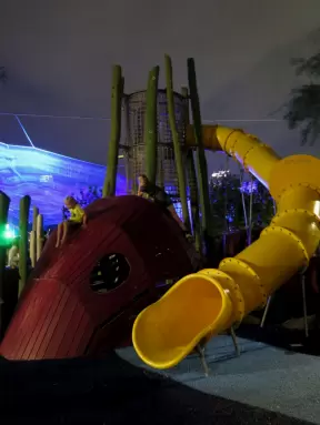 Amazing new development with gorgeous modern buildings, cafes, an incredible playground, and interesting lights at night.