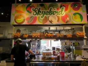 Shopping plaza near UCSD with Mendocino Farms cafe, Whole Foods market, Cava Bowls, Rubio's Coastal Grill, Philz Coffee, and some nice murals.