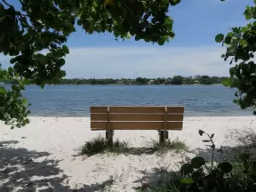 Waterfront park with amazing colors in the water- views of an island and blue-green sandbars. Plenty of benches and docks, and a playground.