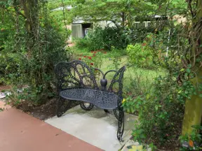 A tropical wonderland of palms, ferns, bromeliads, fountains, sculptures, rocks, ironwork gates, and pergolas, with the delightful scent of flowers filling the air.