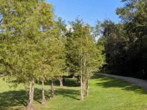 Walk past lake with cypress trees, and down three culdesacs with mansions.