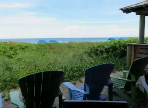 Beach with technicolor blue-green water sometimes, and a huge shady picnic pavilion where neighbors gather to watch the water, on beautiful Jupiter Island.