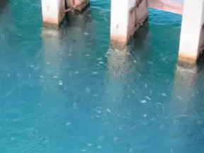 World-famous area full of sealife- see the huge yellow and orange starfish, and manatees, from the jetty! Shaded playground too.