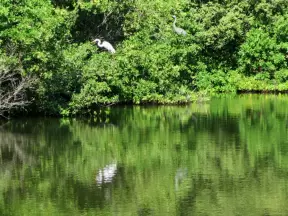A wonderful running/walking path leads through jungly vegetation around three lakes.
