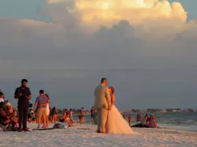White sand beach with glorious sunsets. You can grab food at the cafes on Pine Ave and have a picnic at the beach.