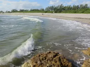 Limestone rocks that spurt water when the waves are 4-6 feet, a path through twisty trees to the beach, a visitor center, and a loop hike by the intracoastal.