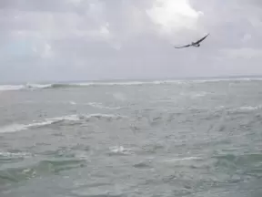 Beach where fishermen hang out on the jetty and surfers come to ride the waves at Jupiter Inlet.