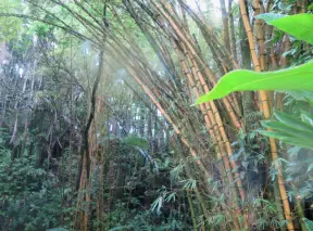 Zigzag to the bottom of a sinkhole covered in lush tropical rainforest.
