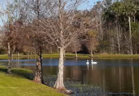 Walk past lake with cypress trees, and down three culdesacs with mansions.