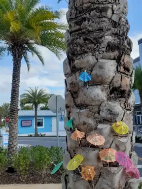 Main strip of West Palm Beach, with colorful and inviting architecture and decorations.