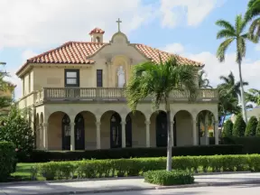 Walk past mansions in the shade of pine and palm trees on Palm Beach Island.