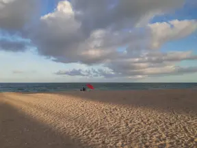 Beautiful beach with an abundance of white sand, lifeguards, gazebos in a park before the beach, and a seagrape forest boardwalk to get to the beach.