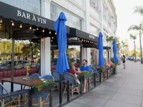 Gorgeous outdoor mall near UC San Diego, with lots of public spaces, cafes, and even a huge outdoor climby for kids.
