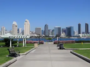 Sublime park with views across the smooth blue water to the San Diego skyline.