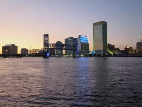 Gorgeous views of the blue bridge and wide waterway. See public art, and dolphins.