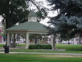 Park with gazebo in a neighborhood full of cottages and gardens. Nowadays, more like an outdoor homeless shelter.