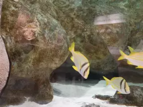 Small aquarium with two halls full of beautiful tanks, plus two decks stunning views over a cove.