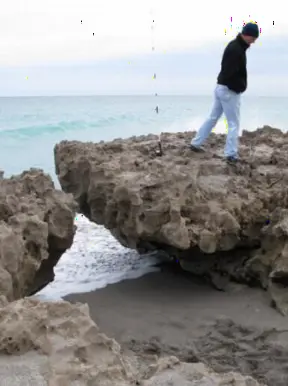 Limestone rocks that spurt water when the waves are 4-6 feet, a path through twisty trees to the beach, a visitor center, and a loop hike by the intracoastal.