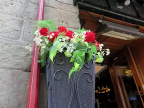 A sophisticated European-style development with shops, cafes, fountains, gorgeous architecture, and the most amazing flower baskets!
