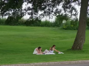 Wonderful spot along the river, with happy people biking and roller blading by. Observation tower with sweeping views.