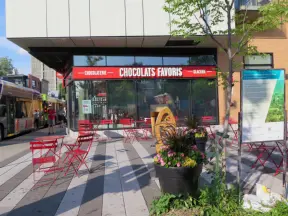 A sophisticated European-style development with shops, cafes, fountains, gorgeous architecture, and the most amazing flower baskets!