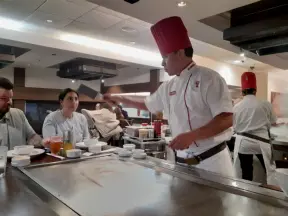 Ultra colorful resort with palm trees galore, live music by the pool, hotel rooms plus cottages, and shopping center.