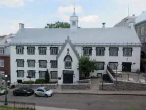 Chateauesque-style City Hall building, and above, terrace and amazing varied splash pad for hours of giggly fun.