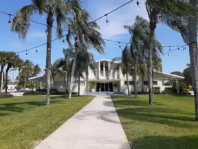 Pretty park at the beginning of the North Lake Trail, near the Flagler Memorial Bridge. Walk under the bridge to check out Royal Poinciana Plaza.