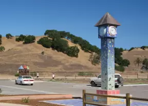 A remarkably pretty planned park with a stream that runs through it, lots of plants, an imaginative Spanish playground, and whale statues that spout water!
