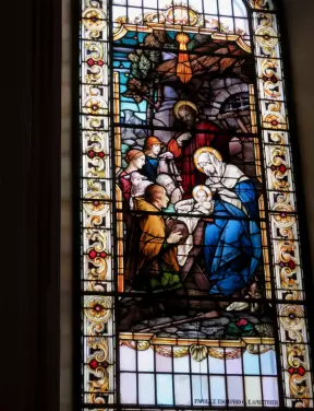 Beautiful modern basilica with gift shop, water lilies, stained glass, rose window, organ and exceptional choir.