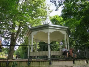 Park with gazebo in a neighborhood full of cottages and gardens. Nowadays, more like an outdoor homeless shelter.