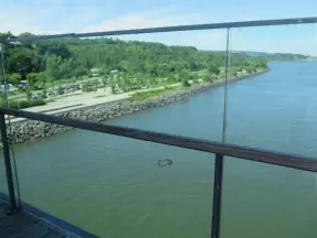 Wonderful spot along the river, with happy people biking and roller blading by. Observation tower with sweeping views.
