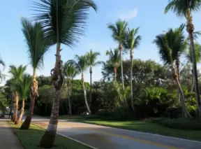 Walk past mansions in the shade of pine and palm trees on Palm Beach Island.