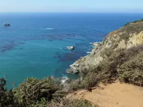 One-mile stunning walk with sweeping views of the coastline, sea stacks of all shapes, pelicans, coves, glistening water, flowers hanging off cliff faces.