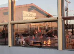 Fun spot with several waterfront cafes that are colorful. Almost blue-green water, dolphins, pelicans, and turtles!