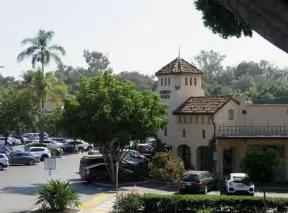 Grocery store shopping plaza that is cozy, with eucalyptus galore, not on the beach though.