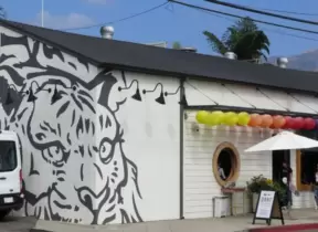 Shopping plaza near UCSD with Mendocino Farms cafe, Whole Foods market, Cava Bowls, Rubio's Coastal Grill, Philz Coffee, and some nice murals.