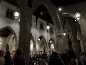 Gorgeous Gothic architecture, impressive chapel, and cute patios under leafy trees.