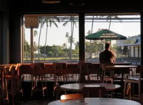 Fun spot with several waterfront cafes that are colorful. Almost blue-green water, dolphins, pelicans, and turtles!
