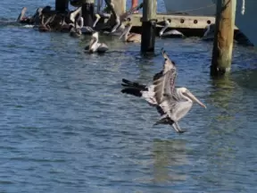 Fun spot with several waterfront cafes that are colorful. Almost blue-green water, dolphins, pelicans, and turtles!