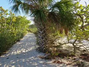 Tropical walk through mangrove forest and varied vegetation to a huge gazebo over the intracoastal and a path to a little beach.