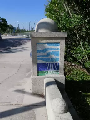 Wonderful spot along the river, with happy people biking and roller blading by. Observation tower with sweeping views.