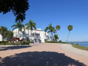 Beautiful, large park on the intracoastal waterway with a wonderful children's museum, splash pad, pier, waterfront boardwalk, white sand beach, mansion, captain's house, mangrove boardwalk, and path around a pond.