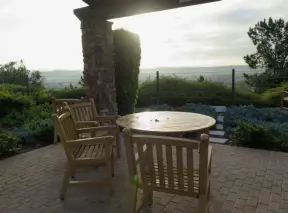 Lovely path beside a eucalyptus forest, on both sides of the creek, with workout stations, in a residential neighborhood. You can walk two miles total. Also called San Luis Ranch.