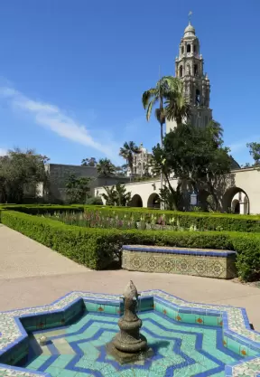 A remarkably pretty planned park with a stream that runs through it, lots of plants, an imaginative Spanish playground, and whale statues that spout water!