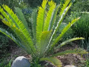Small area of bromeliads, cycads, palms, and pine trees on a street corner. Beautiful plant varieties.
