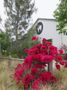 Walk the secret garden, plus admire the ranunculus flowers at the Madonna Inn entrance door in springtime, or swing, line, and ballroom dance on the fancy dance floor to live music most nights!