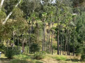 Gorgeous botanical garden with paved one mile walk to a waterfall.