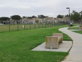 Loop walking path popular with residents, plus a playground.